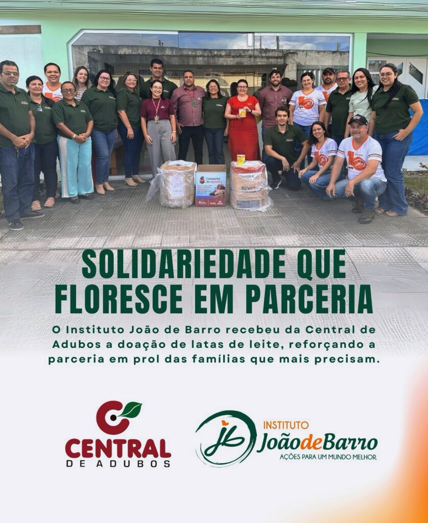 Para o Instituto João de Barro, cada contribuição tem um significado profundo. Ela fortalece nossa missão de cuidar de famílias em situação de vulnerabilidade e semear dignidade, amor e oportunidades. A iniciativa da Central de Adubos mostra que a responsabilidade social é um caminho capaz de mudar realidades — e que juntos podemos fazer muito mais.